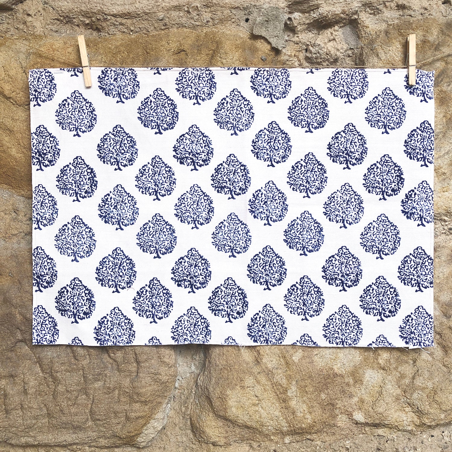 Hand block-printed fabric by celebrated designer John Robshaw.